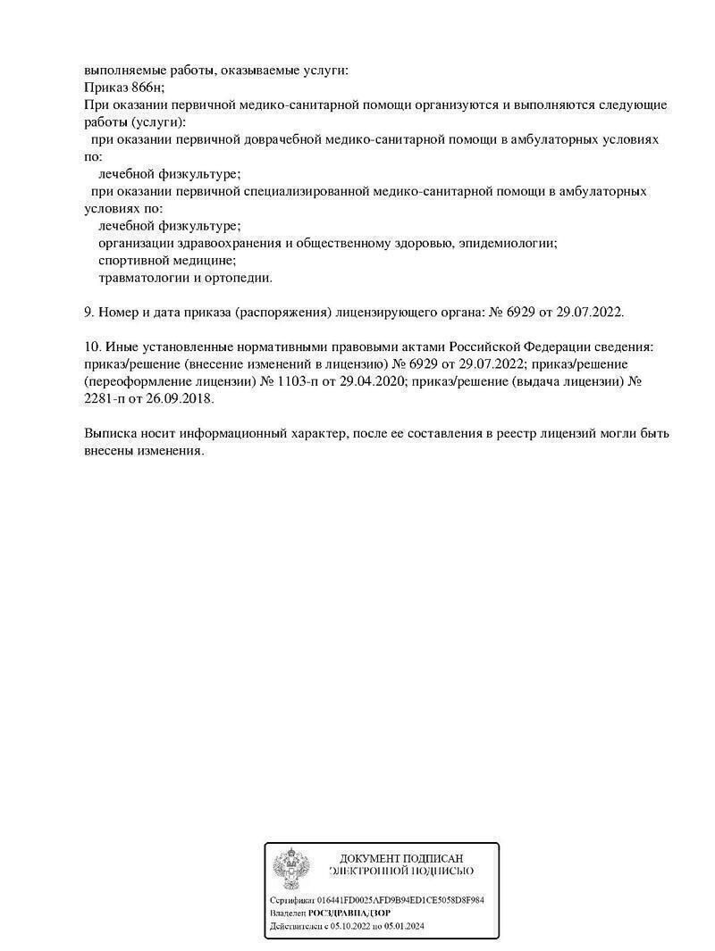 Специализируется на диагностике и лечении различных заболеваний опорно-двигательного аппарата: нарушений осанки, нарушений походки, деформации нижних конечностей, уменьшения гибкости в различных отделах позвоночника.